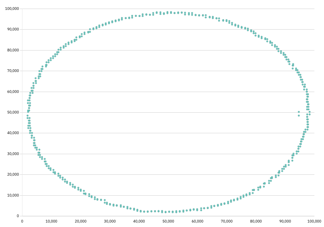 Try drawing a big rectangle, either in the top half or the bottom half, using any two coordinates of the circle as opposite corners.